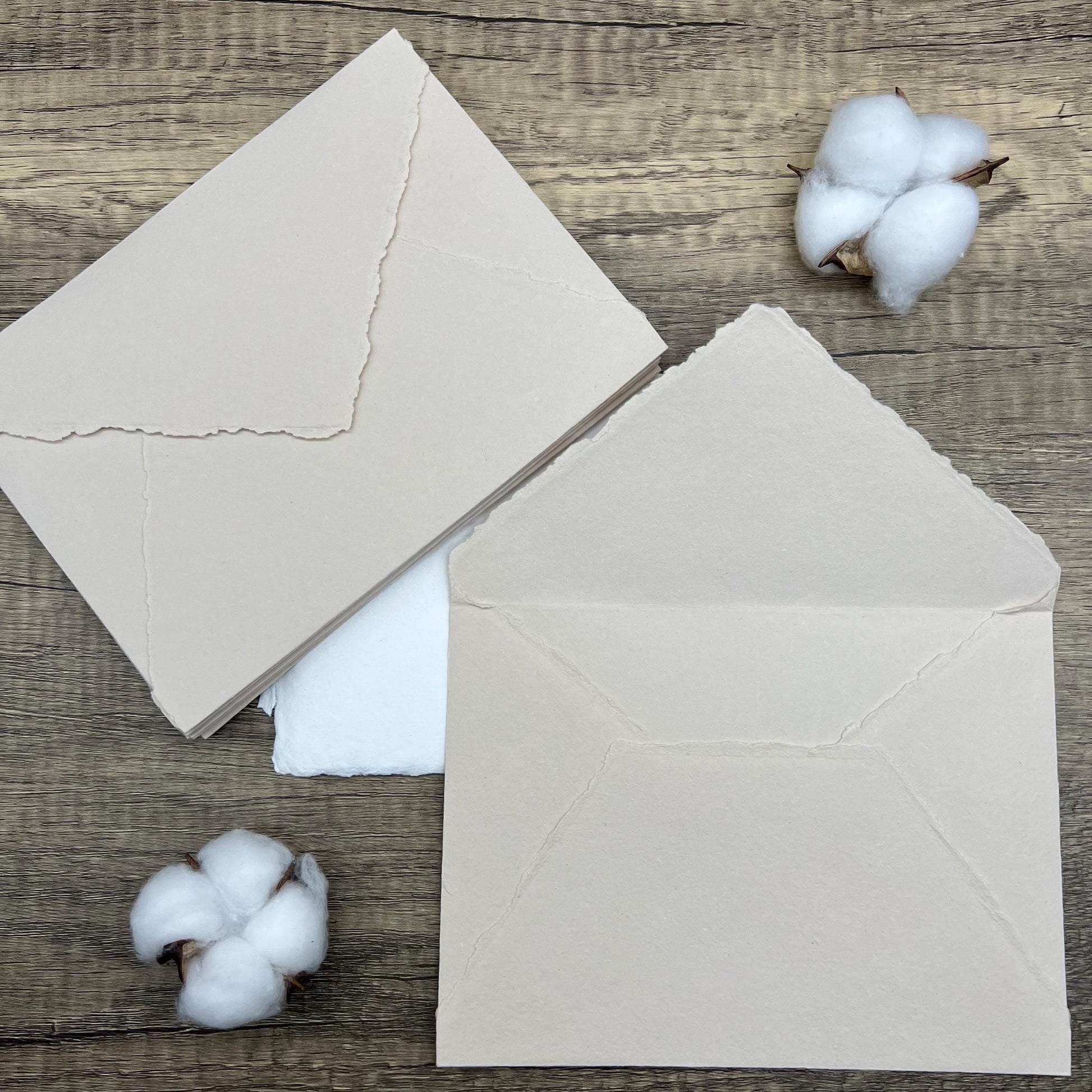 10 Beige Handmade Cotton Deckle Edge Envelopes | Cotton Rag Paper | Torn Edge Stationery for Invitations, Announcements, Wedding, RSVP
