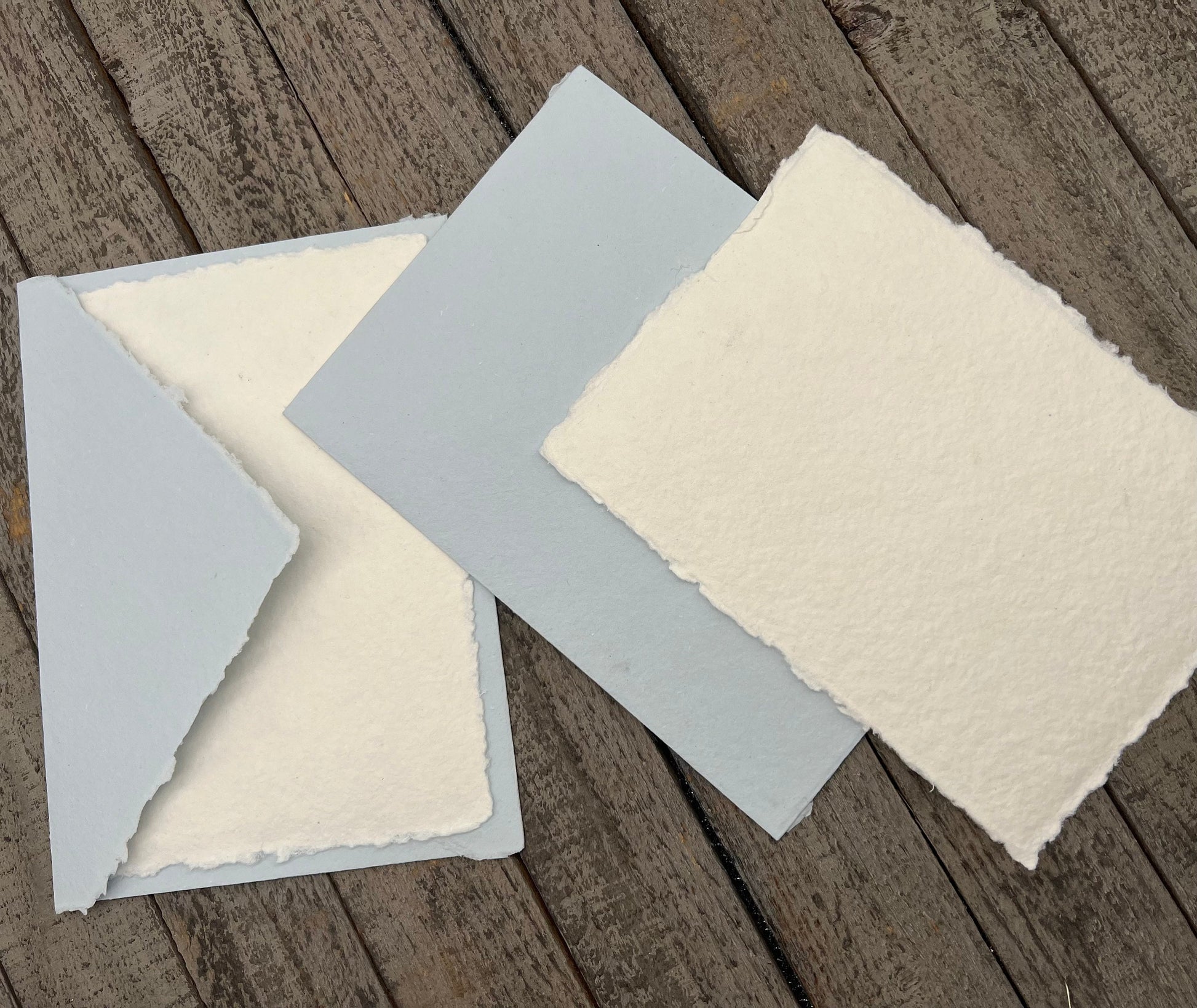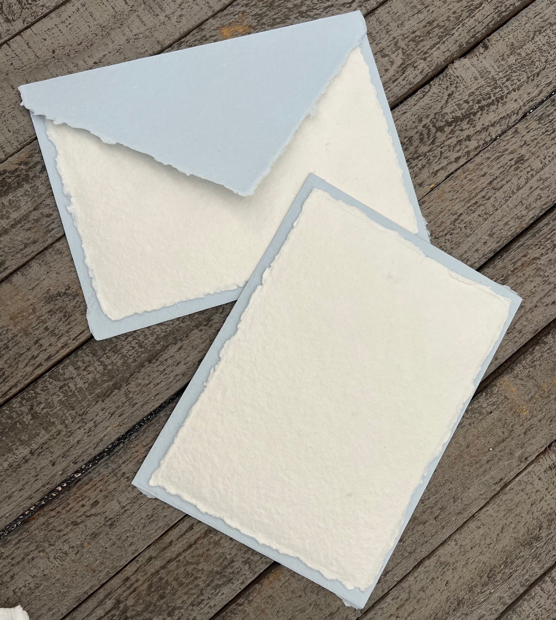 Baby Blue Stationery Set 20pcs - Handmade Cotton Paper & Envelopes, Deckle Edge, Calligraphy, Thank You Cards, RSVP, Letter Writing